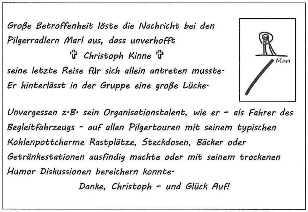 Fragen/Anregungen gerne per mail an: pilgerradler@gmx.de
